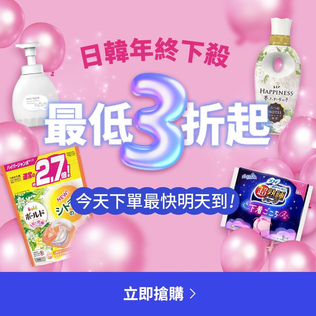 日韓年終慶 限時優惠倒數中 日韓必買商品,年終慶限時優惠。 精選美妝、保養、生活好物, 最低 3 折起。 👉立即前往選購